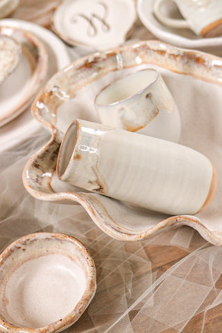 My mother, Brent DeShea, founded Etta B Pottery in early 2008. Through her entrepreneurial spirit and with a keen eye for beauty, she carved out her own place in the world of pottery and is completely self-taught. Learning the art of pottery takes a lot of patience and perseverance. She has a deep love for her craft and has always been talented, designing pieces with natural heirloom-quality. Throughout the last 17 years, every piece she continues to create carries the same passion and dedication as the first piece she made. Her designs continue to evolve bringing timeless, handcrafted pieces tailored for every season. Each dish is still thoughtfully and carefully handmade & hand-painted, ensuring that what you bring into your home is more than just pottery, it's a true work of art. Thank you for supporting our handmade pottery from Etta, Mississippi.