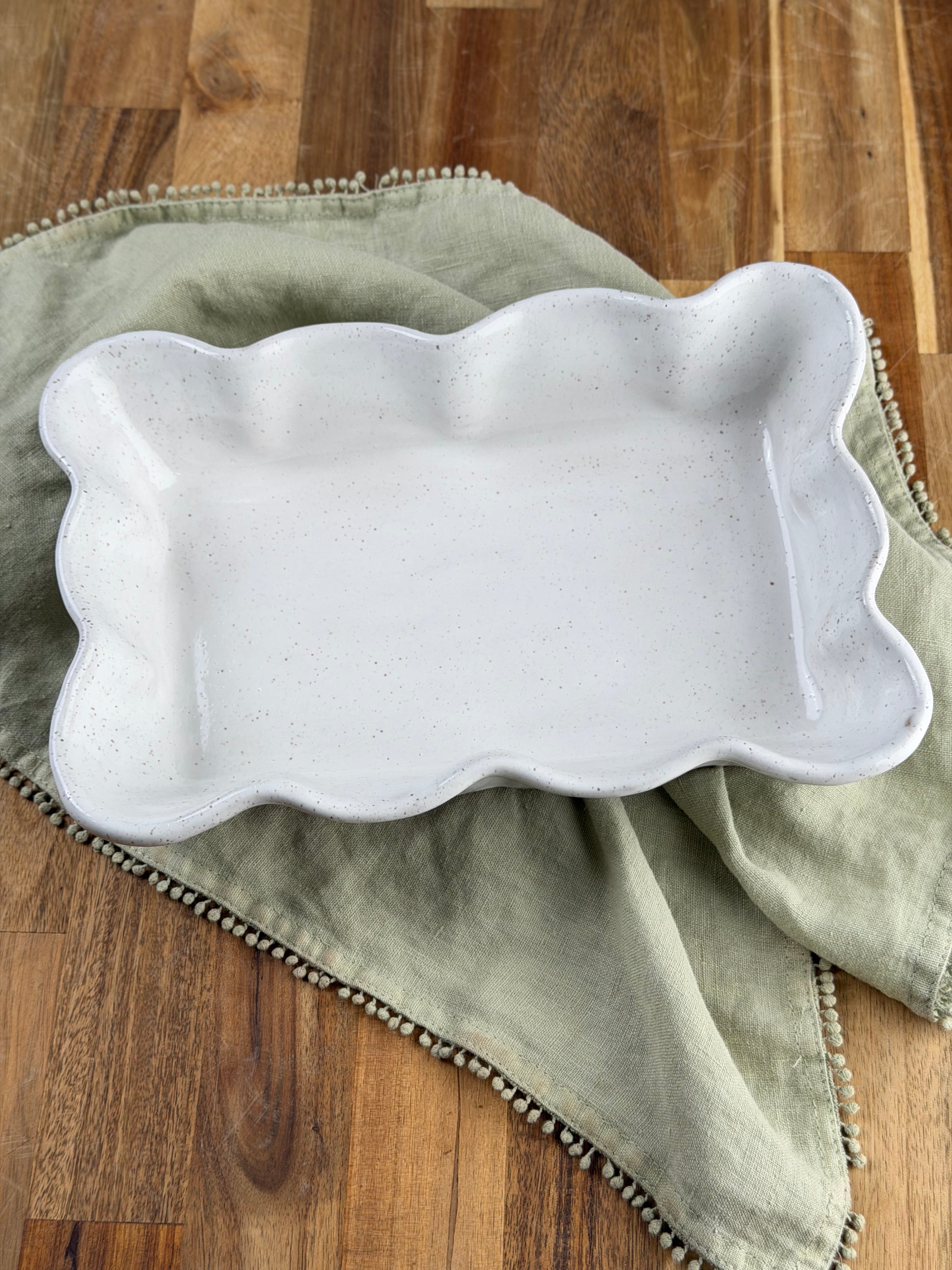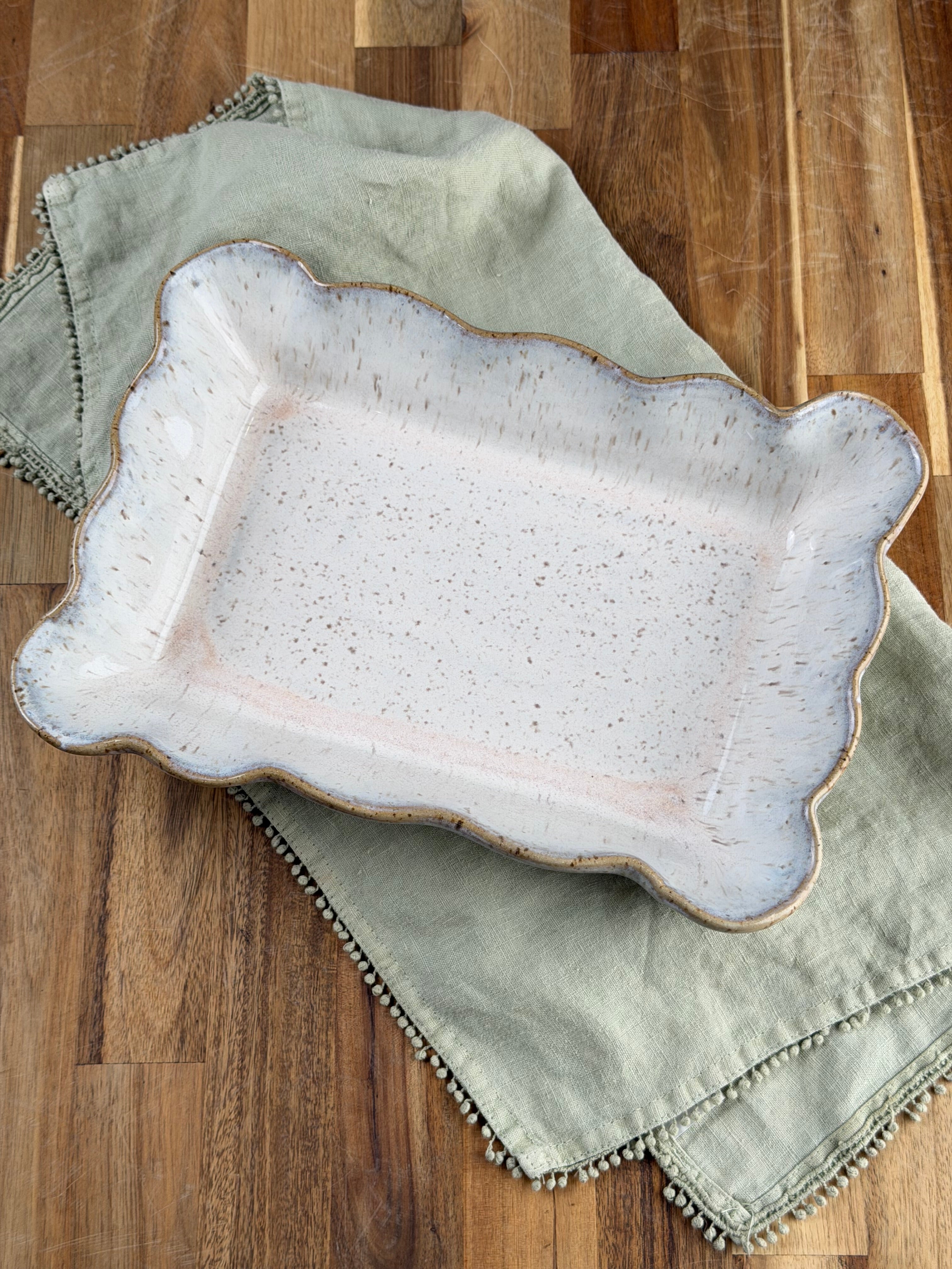 Guest sized napkin holder with hand crafted ruffled edge. No two are just alike.