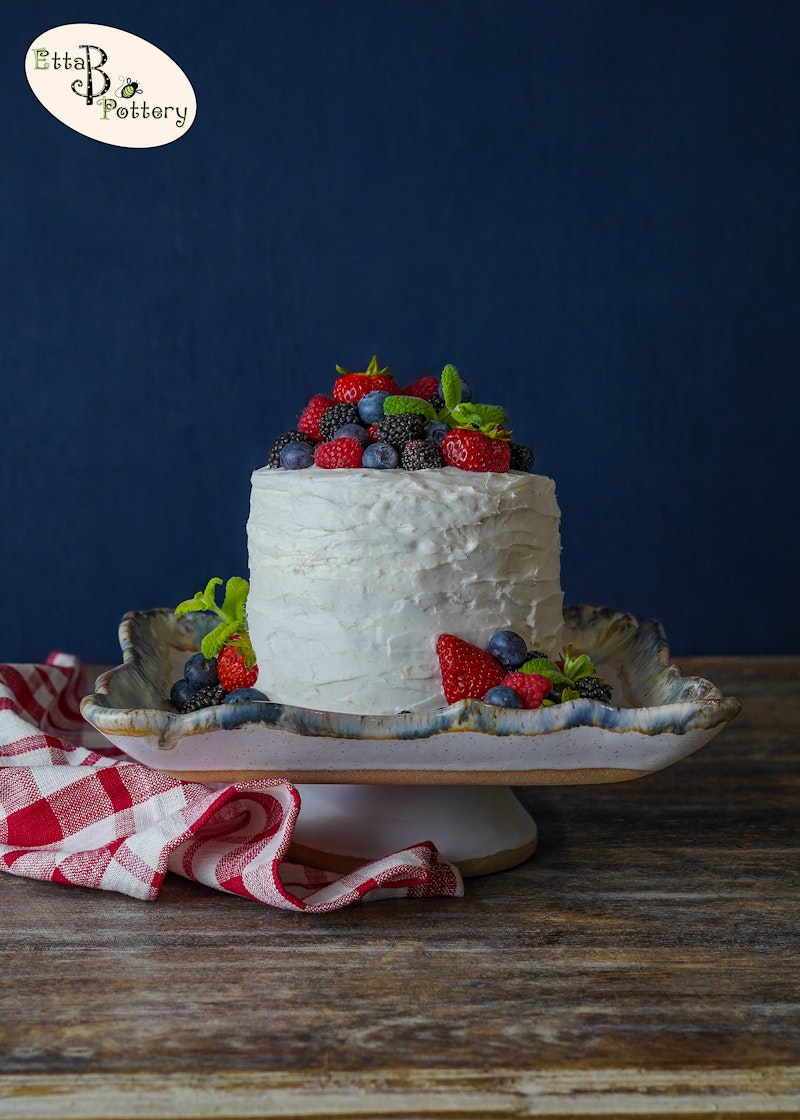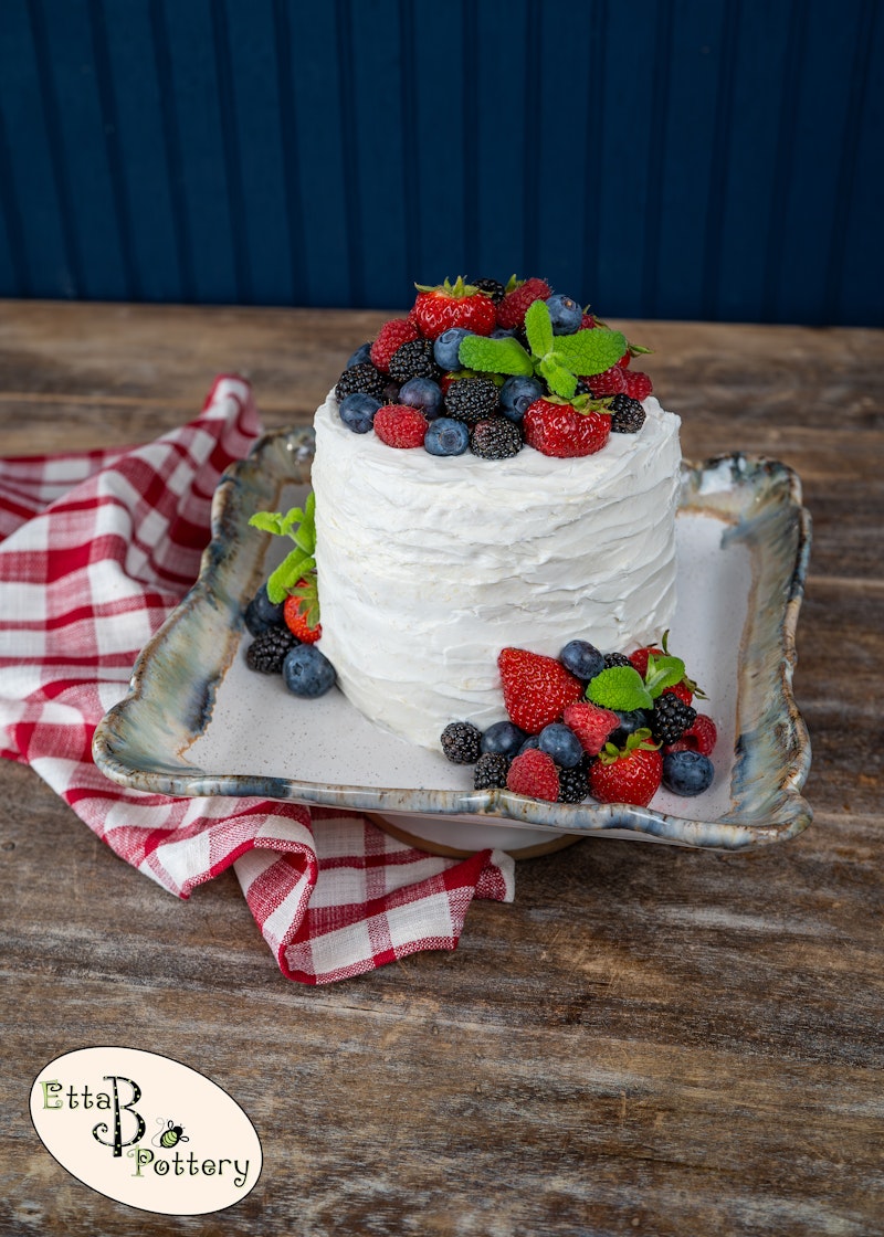 Pictured in our new Botanical glaze in the first picture. With the cake, it is shown in Magnolia.