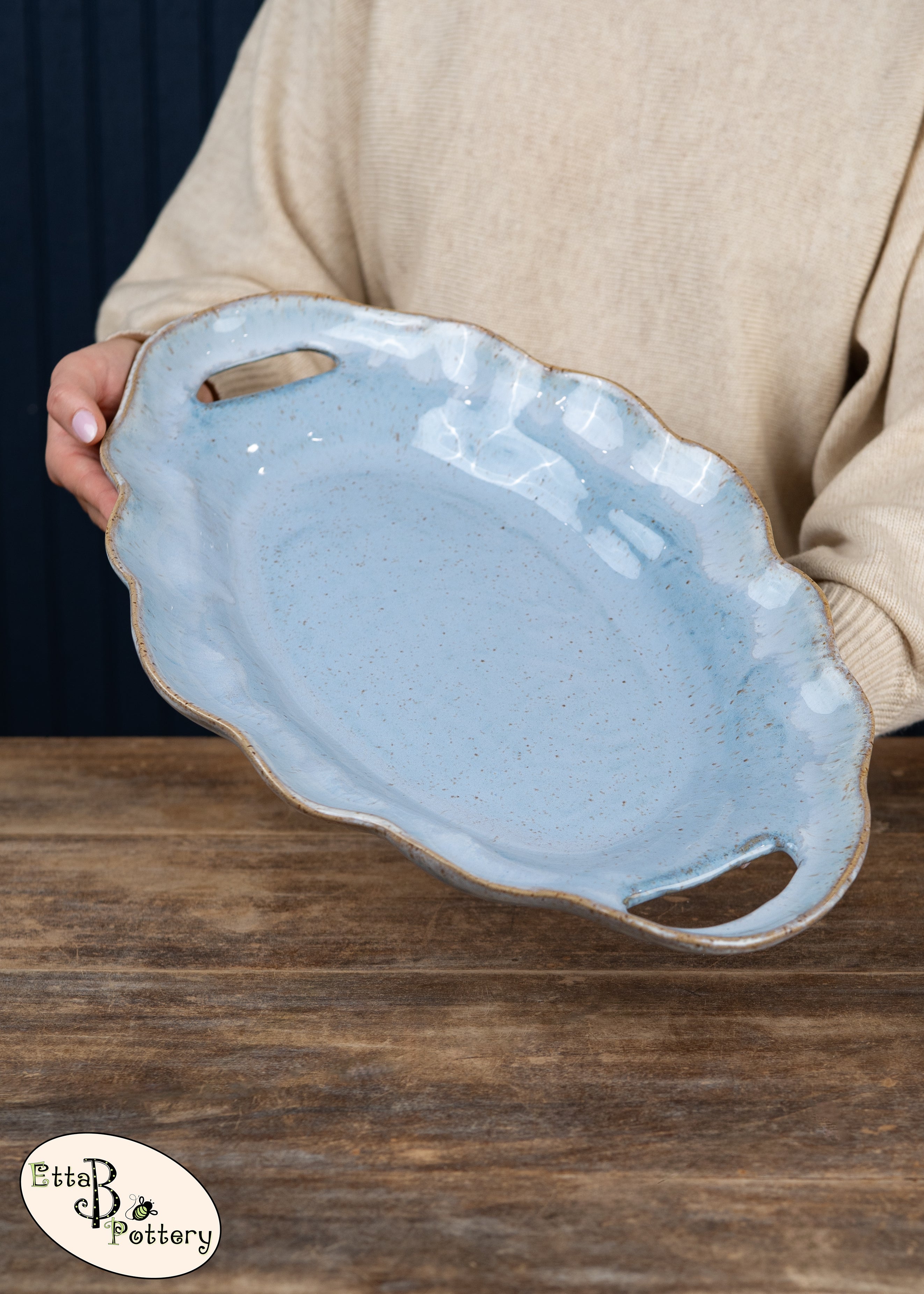 The Café Tray brings timeless elegance to your table with its distinctive ruffled edge and graceful open handles. The generous surface accommodates everything from breakfast pastries, snacks and cheeses, to appetizers and desserts.