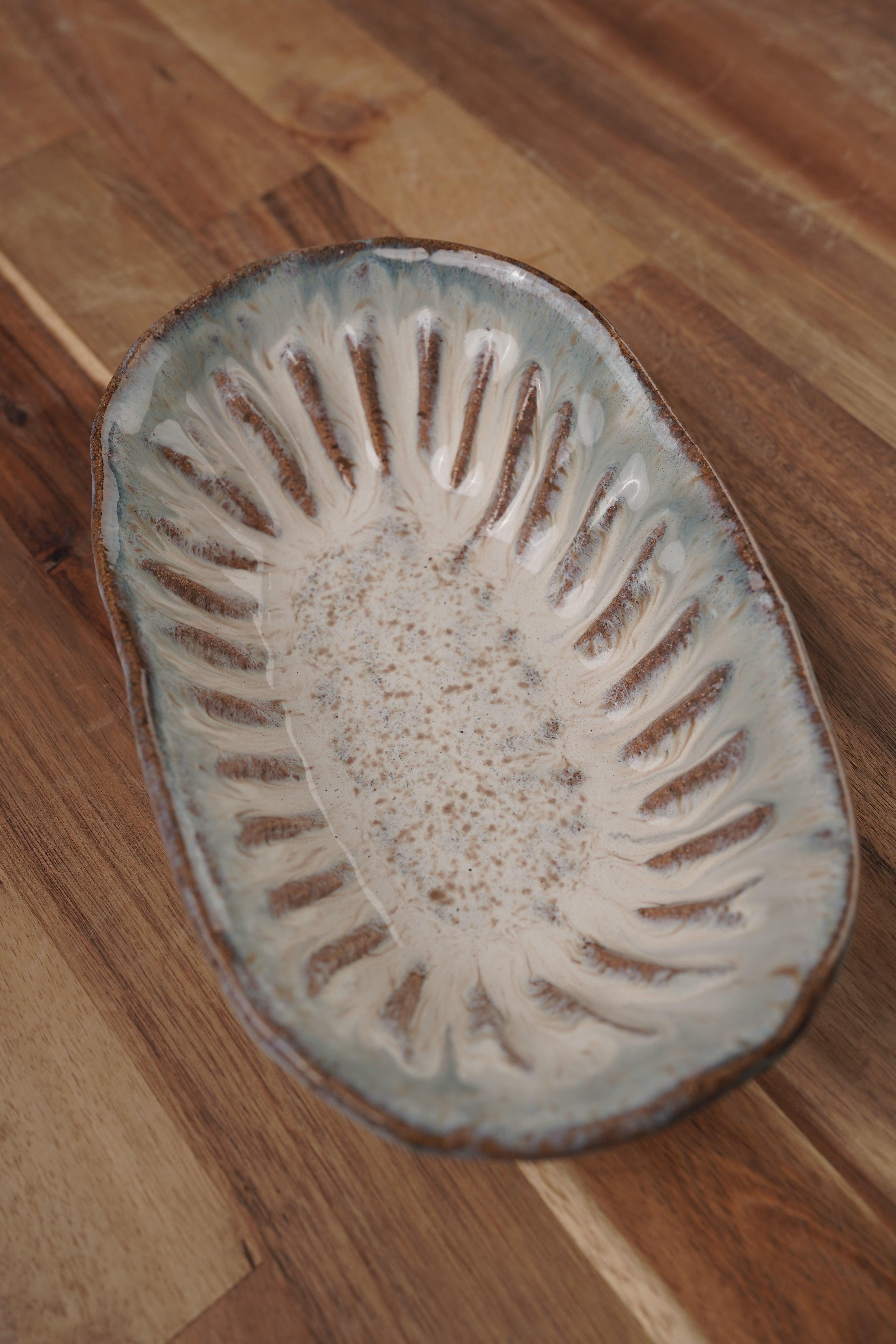 This southern side dish is great for serving as well as a decorative piece. It has light hand-grooving details along the sides for a subtle handmade touch.