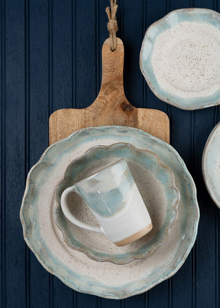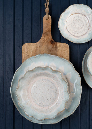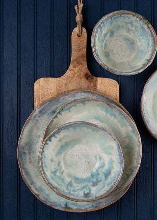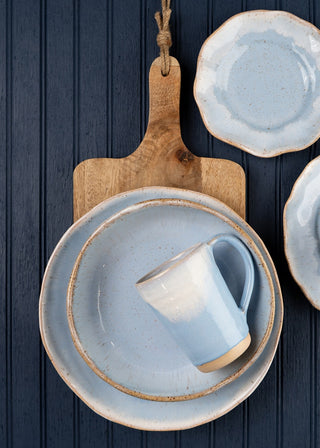 Glossy soft blue glaze with a creamy rim