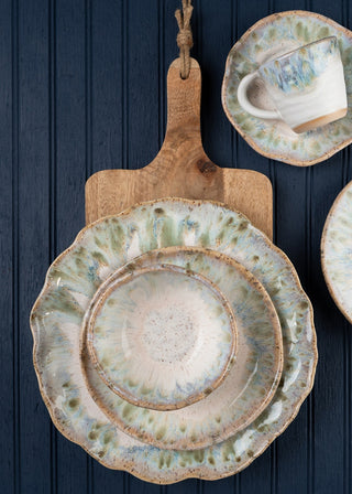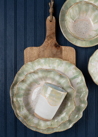 Glossy rich green with a Chantilly Cream rim.